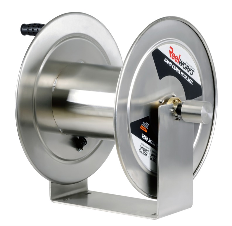 pressure applications. This reel is ideally suited to carry up to 76m of 1/2โ and 100m of 3/8โ hose, with floor, wall, and vehicle mount options.